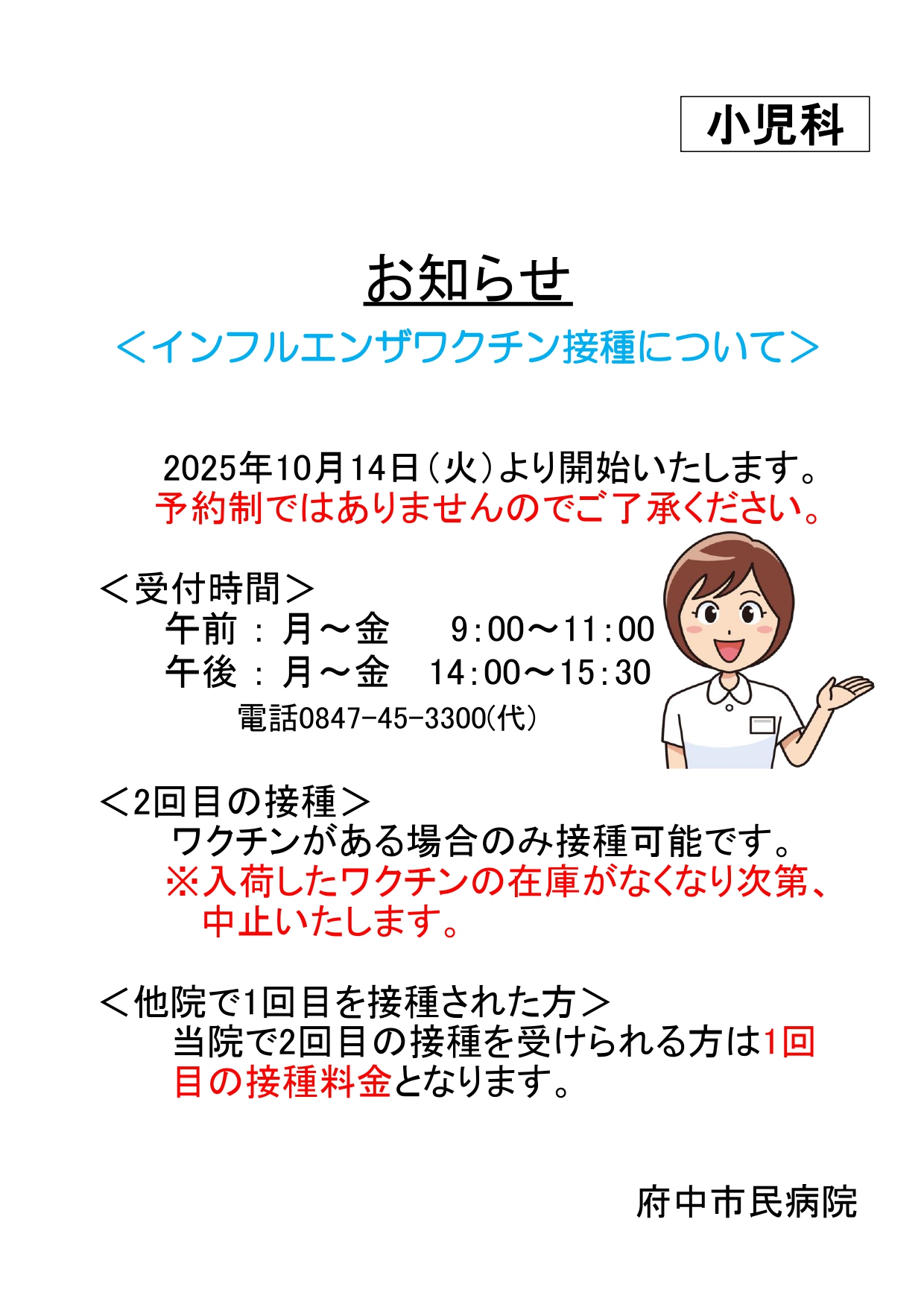 ◎予約の必要なもの:B型肝炎(任意接種)、子宮頸がんワクチン定期接種(小6~高1)、不活化ポリオ